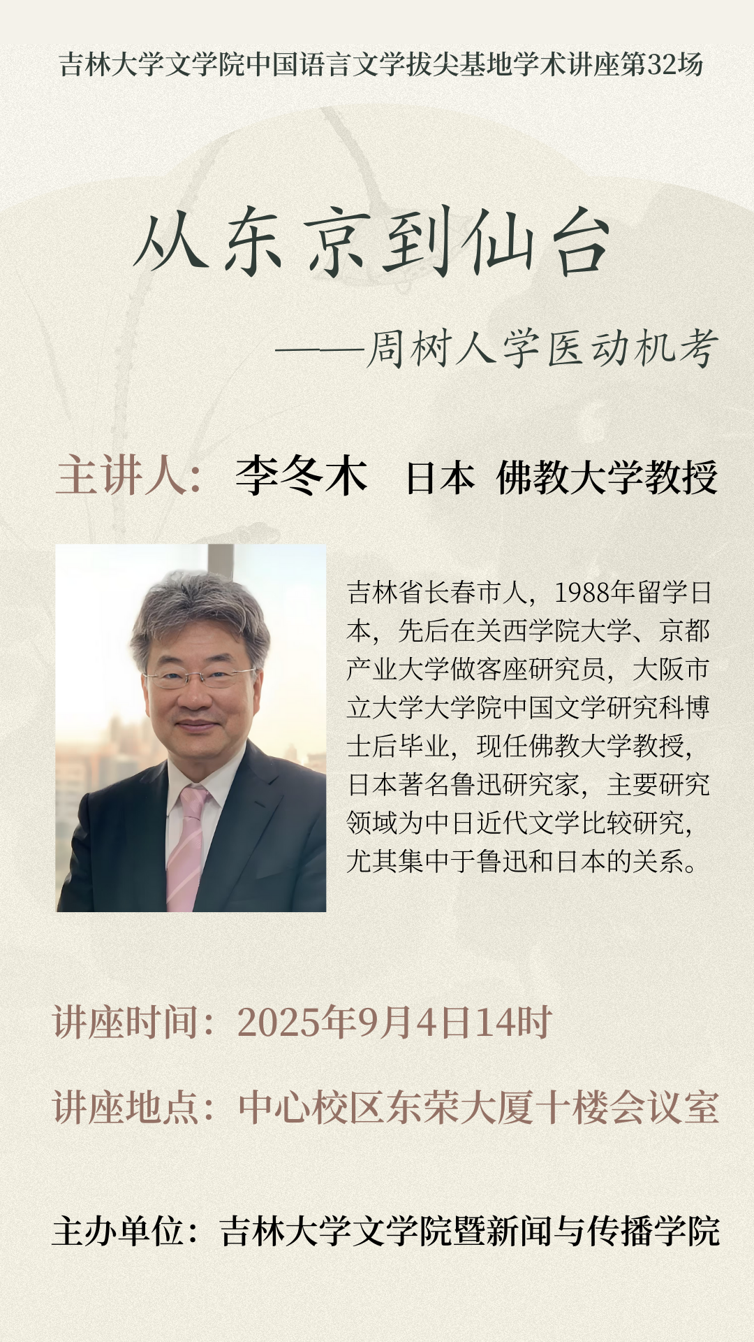 时博手机网中国语言文学拔尖基地学术讲座第32场 :从东京到仙台——周树人学医动机考